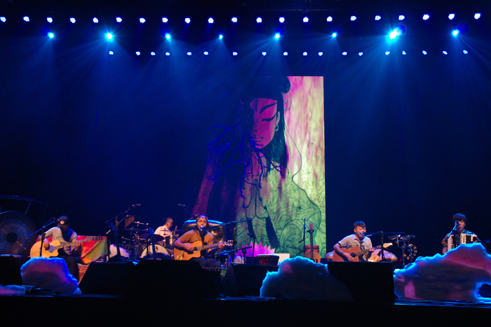 在現場演出中,堪稱柔似山間細流、疾如狂風暴雨的謝天笑與冷血動物樂隊憑借其無以復加的瘋狂表演,震撼著每一位觀眾的心靈。用他的話說,古箏像流水,搖滾像石頭,古箏與搖滾的相融就是獨特與桀驁的混血。在廣大樂迷心中,謝天笑與冷血動物是西方現代文明與中國古老哲學思想的完美結合體,是力量與思考的化身。