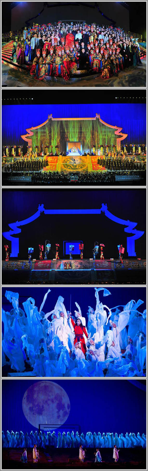 《圖蘭多》1997年/意大利佛羅薩節(jié)日歌劇院版.1998年/北京禁城太廟實景版.2003年/韓國首爾.2005年/法國巴黎。德國慕尼黑體育場版.2008年/國家大劇院版